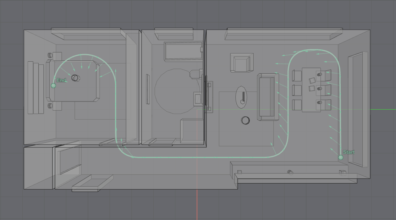 Among the available options, the TrajectoryGenerator.polyline() function is generally recommended for defining custom moving paths. It allows users to specify a sequence of control points along the desired route, offering a flexible and intuitive way to describe arbitrary motion. Additionally, a corner-rounding option can be applied to ensure smooth transitions between segments, avoiding abrupt directional changes and enabling more physically realistic movement.