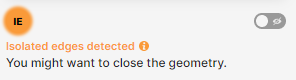 Open edges warning appears when the geometry has no watertight outer shell and but are not as isolated as the Isolated edges; they might be the outside edge of the surface describing a table for instance, and thus are not necessarily something to fix.
