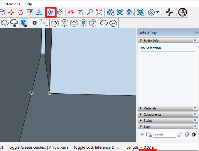 In this example, importing the file into SketchUp left a very small gap that is not directly visible in Sketchup. After zooming in enough, the problem becomes more obvious.